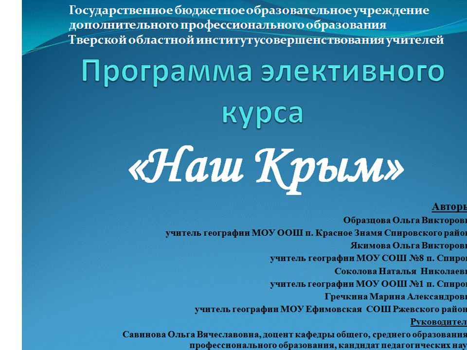 Программа и презентация элективного курса "Наш Крым" |