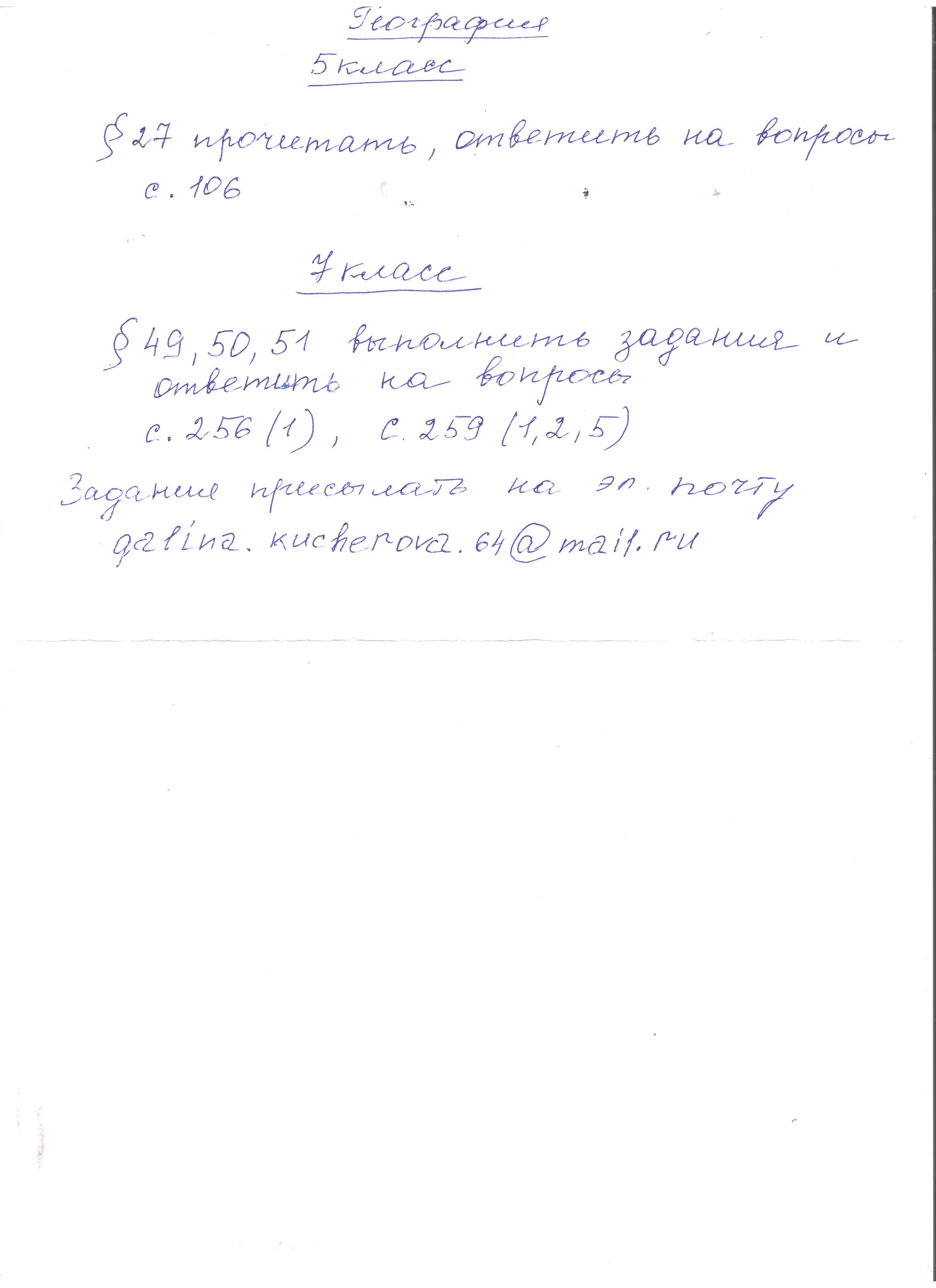 ВЫПОЛНЕННЫЕ ЗАДАНИЯ ПО ПРЕДМЕТАМ МОЖНО ОТПРАВЛЯТЬ НА АДРЕСА ЭЛЕКТРОННОЙ ПОЧТЫ УЧИТЕЛЕЙ ИЛИ ВК