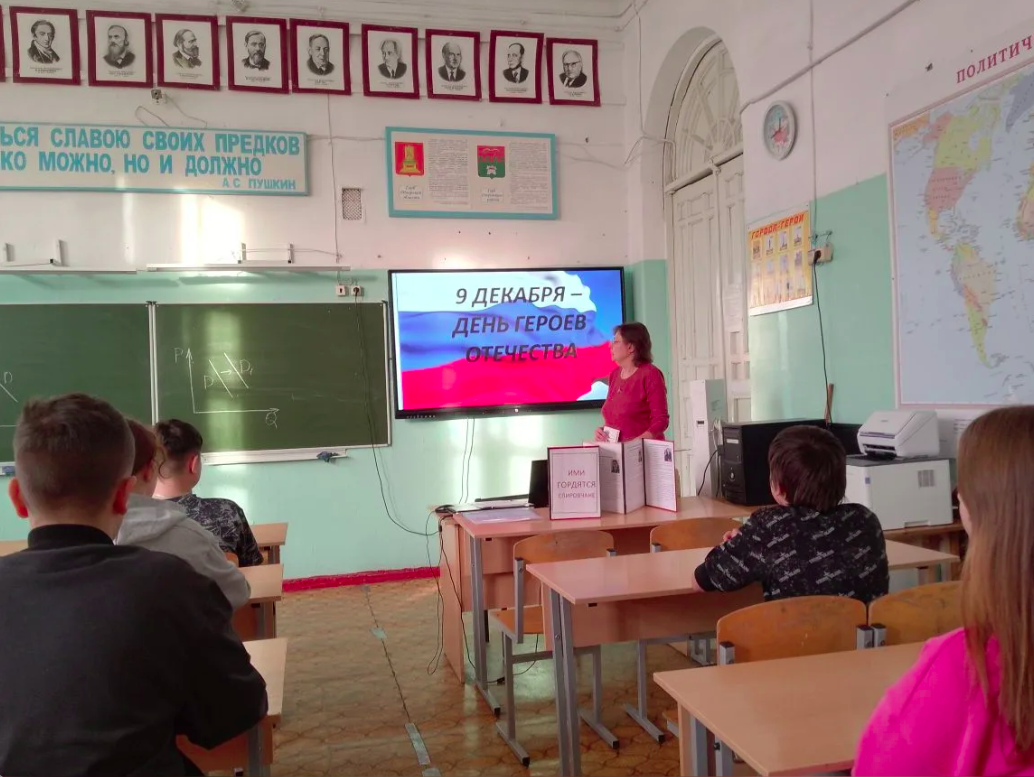 9 декабря для обучающихся 8-11 классов проведен урок мужества "Славные герои Отечества".