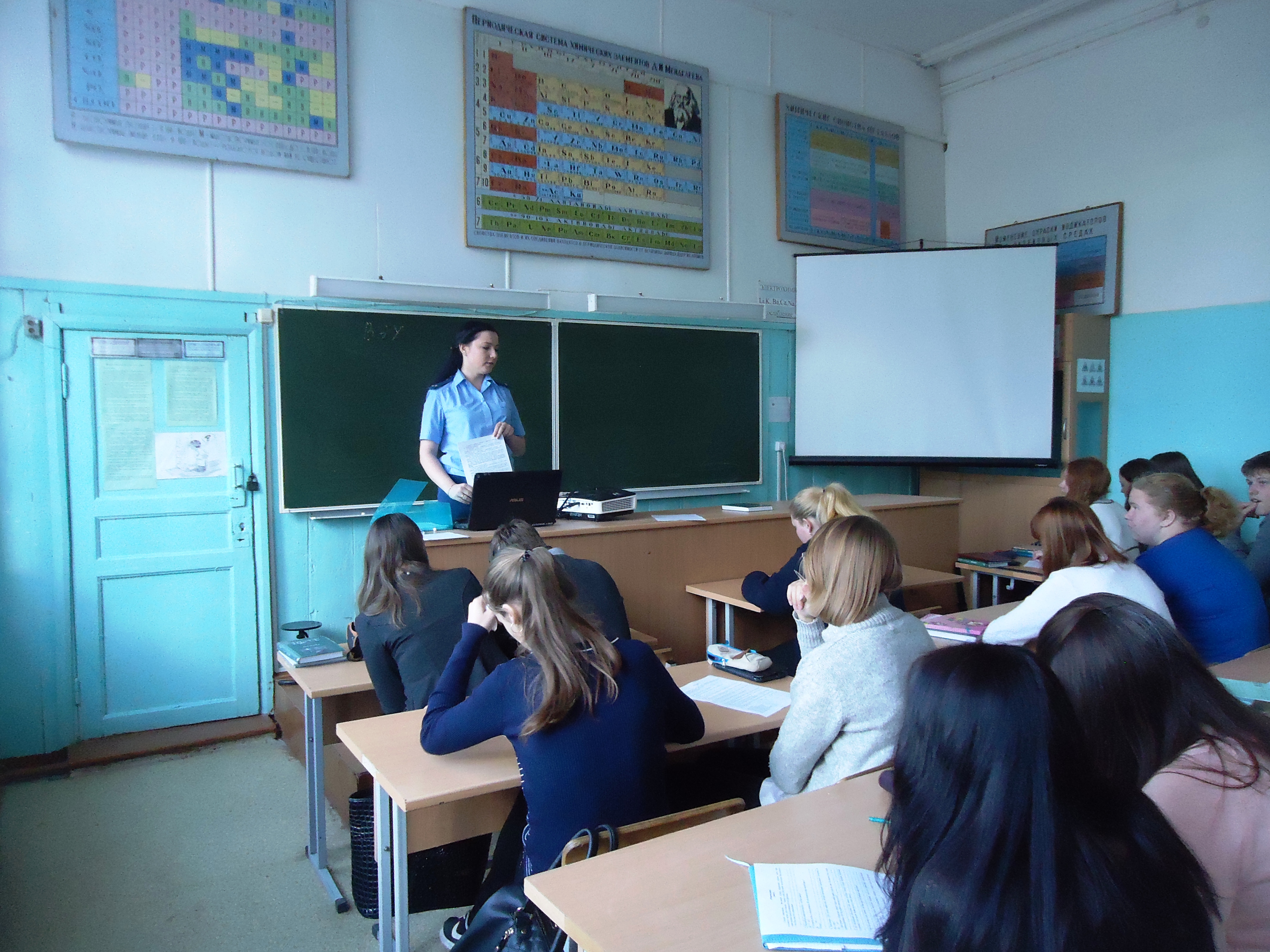 13 октября в школе состоялась встреча старшеклассников с помощником прокурора Спировского района Ивановой Кристиной Николаевной. Тема беседы – «Против наркотиков!» Кристина Николаевна рассказала учащимся 10 и 11 классов о вреде наркотиков и наркотической зависимости, провела анкетирование, чтобы выявить у ребят расположенность к вредным привычкам. Диалог получился очень активный, все учащиеся принимали в нём участие. В рамках антинаркотического месячника пройдёт ещё не мало мероприятий, мы вместе должны бороться с этой проблемой!