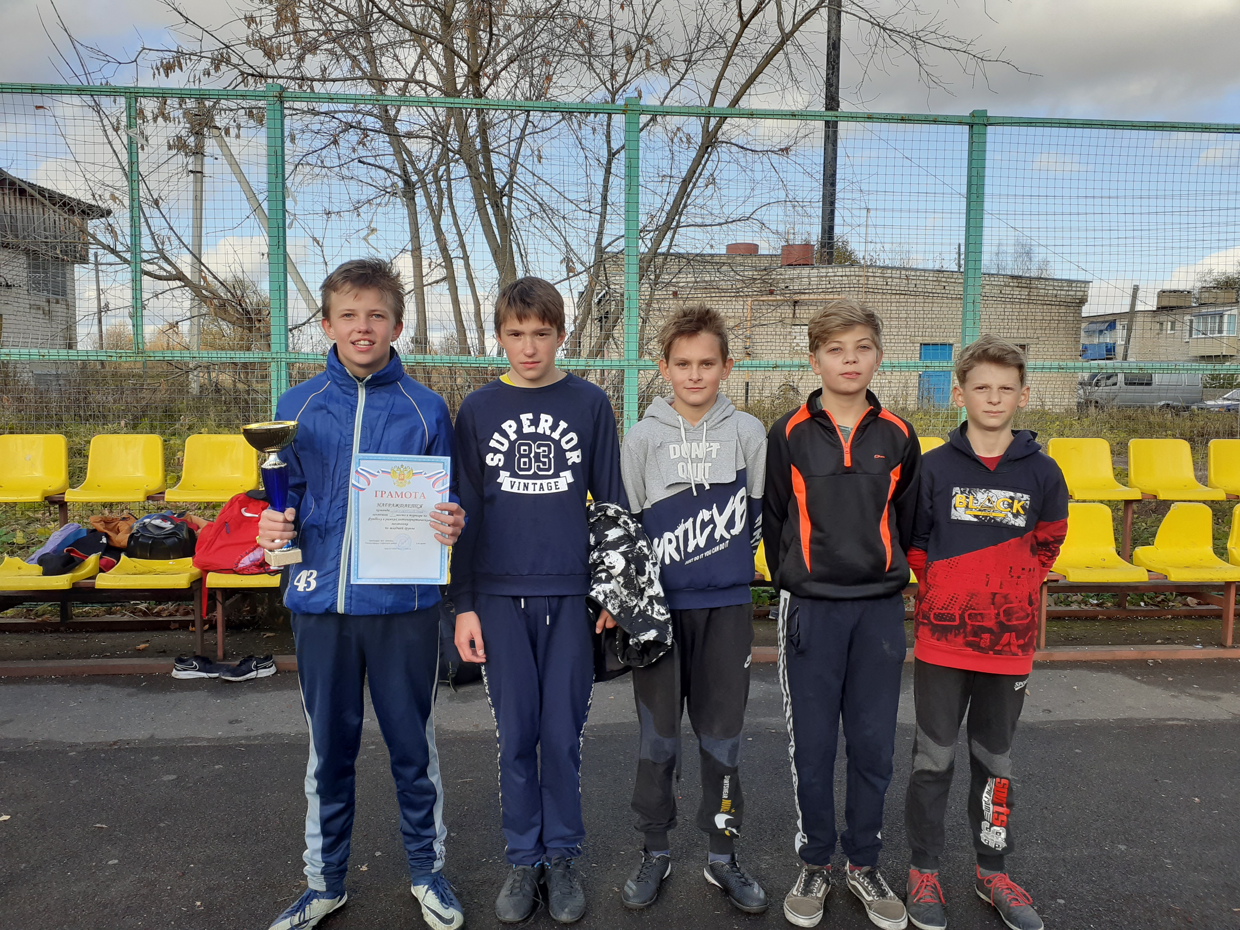 15 октября в рамках антинаркотического месячника прошёл районный турнир по мини-футболу "Мини-футбол в школу!" среди школ района. Нашу школу представили две команды в разных возрастных категориях. По результатам соревнований младшая возрастная группа заняла 1 место, средняя группа также одержала победу Администрация школы выражает благодарность учащимся школы за участие в турнире. |