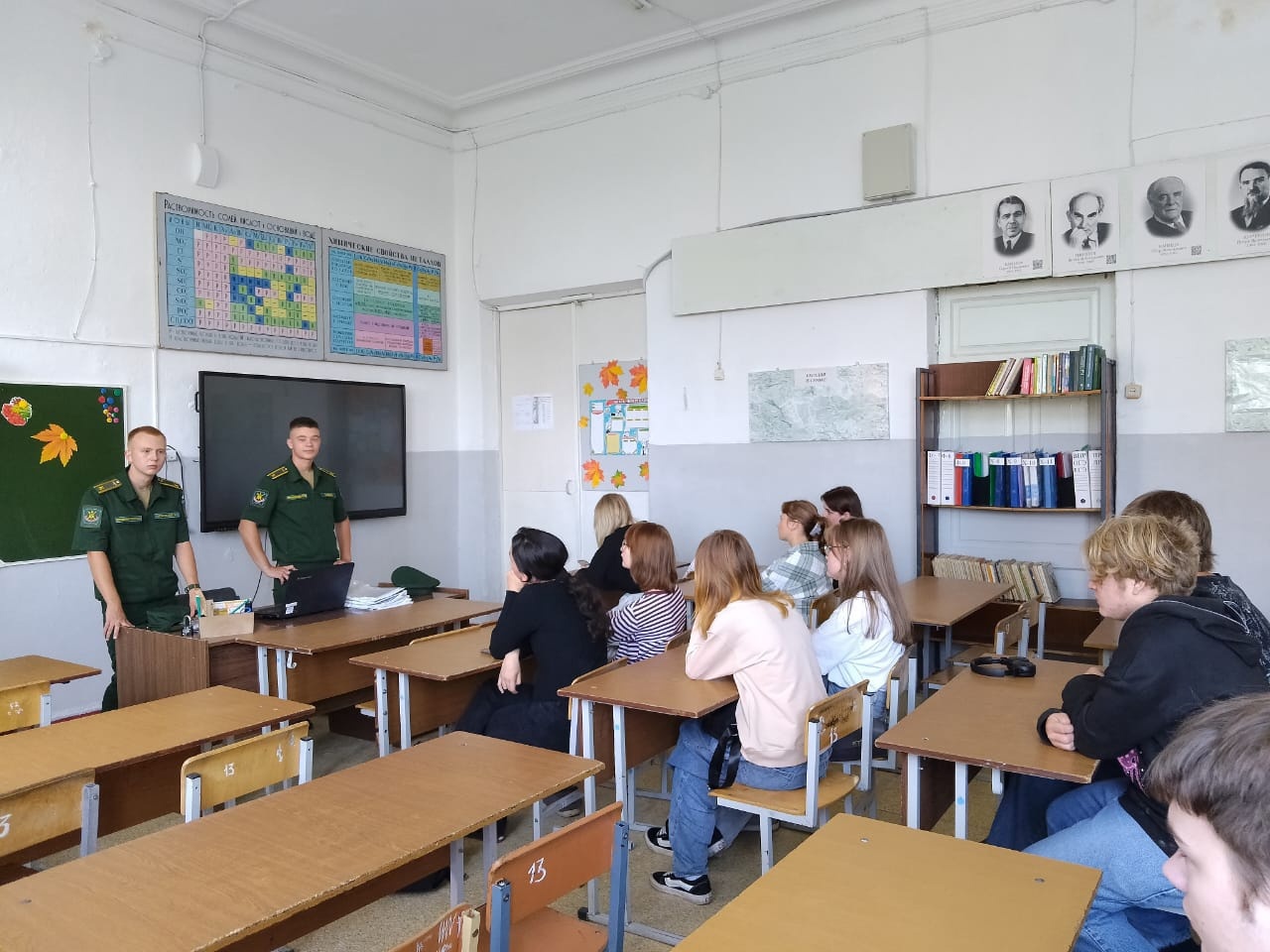 30 августа курсант Военной академии воздушно-космической обороны им. Маршала Советского Союза Г.К. Жукова Вассов Владимир провёл профориентационную беседу для обучающихся 10 и 11 классов. Он познакомил ребят с условиями поступления и обучения. Кроме того, Владимир рассказал о том, чем занимаются куранты в свободное время, какие перспективы открываются перед молодыми людьми, окончившими данное учебное заведение.