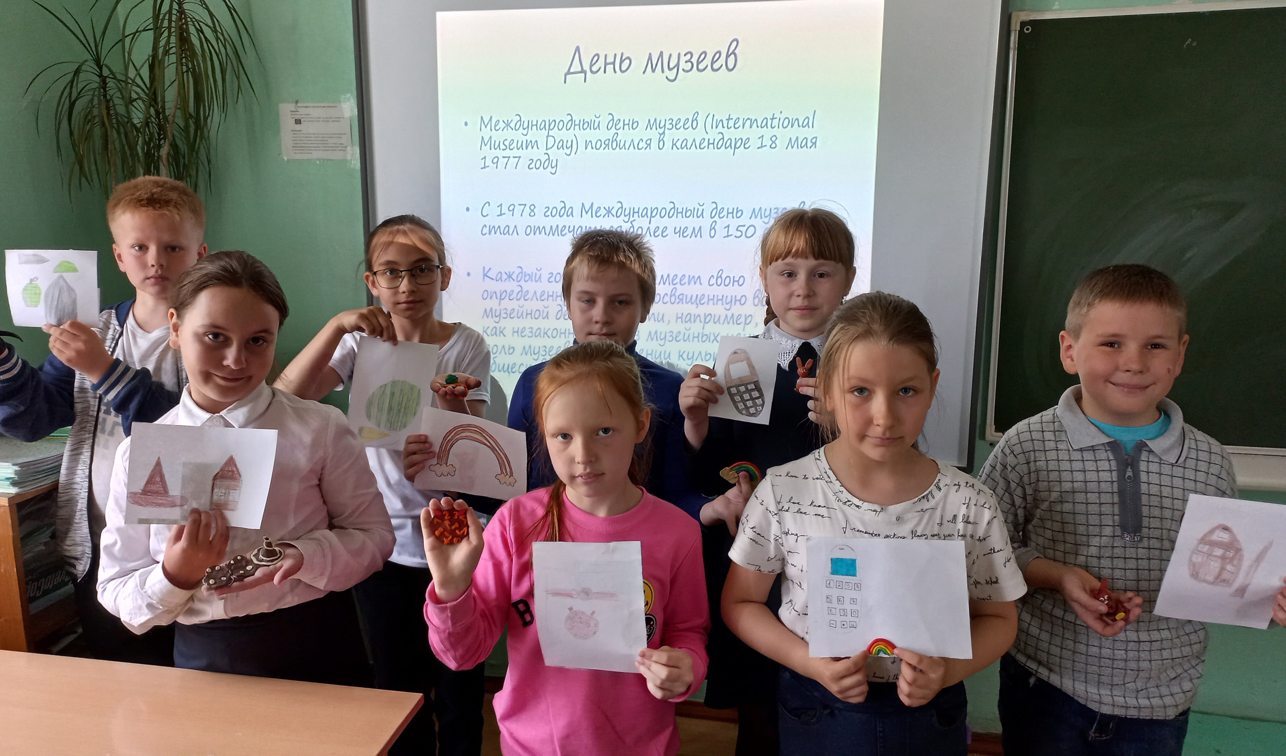 В этот день, учащиеся 3 класса совершили виртуальную экскурсию в самые известные музеи мира: Лувр, Собор Парижской Богоматери, Колизей, Лондонскую Национальную галерею, Замок Тауэр. Конечно же «заглянули» в Третьяковскую галерею, побывали в музеях нашей культурной столицы-Эрмитаже, Кунсткамере. Ещё ребята узнали, что помимо музеев культурно-исторического значения для любителей оригинальности и незаурядности существуют необычные музеи, направленные на особенные тематики, но от этого не являющиеся менее интересными. Например, такие, как Музей воды, Музей шоколада, Музей занимательной науки ЛабиринтУМ в Санкт_Петербурге, Музей игрушки в Сергиевом Посаде, Музей динозавров в Москве, Музей снежинок в Японии, Музей марципанов в Венгрии, Музей «Титаника» в США, музей Шерлока Холмса в Лондоне. Особый восторг у всех вызвал Музей шоколада, всем захотелось побывать там в действительности! Третьеклассники рассказали в каких музеях бывали они, какие экспонаты им особенно запомнились, куда планируют совершить экскурсию на каникулах. Затем ребята нарисовали рисунки и вылепили из пластилина экспонаты для необычных музеев. Большинство конечно же выбрали Музей шоколада! В заключении проведённого мероприятия, третьеклассники пришли к выводу, что посещение музеев-занятие не скучное, а интересное и полезное. Музеи-это целый мир!