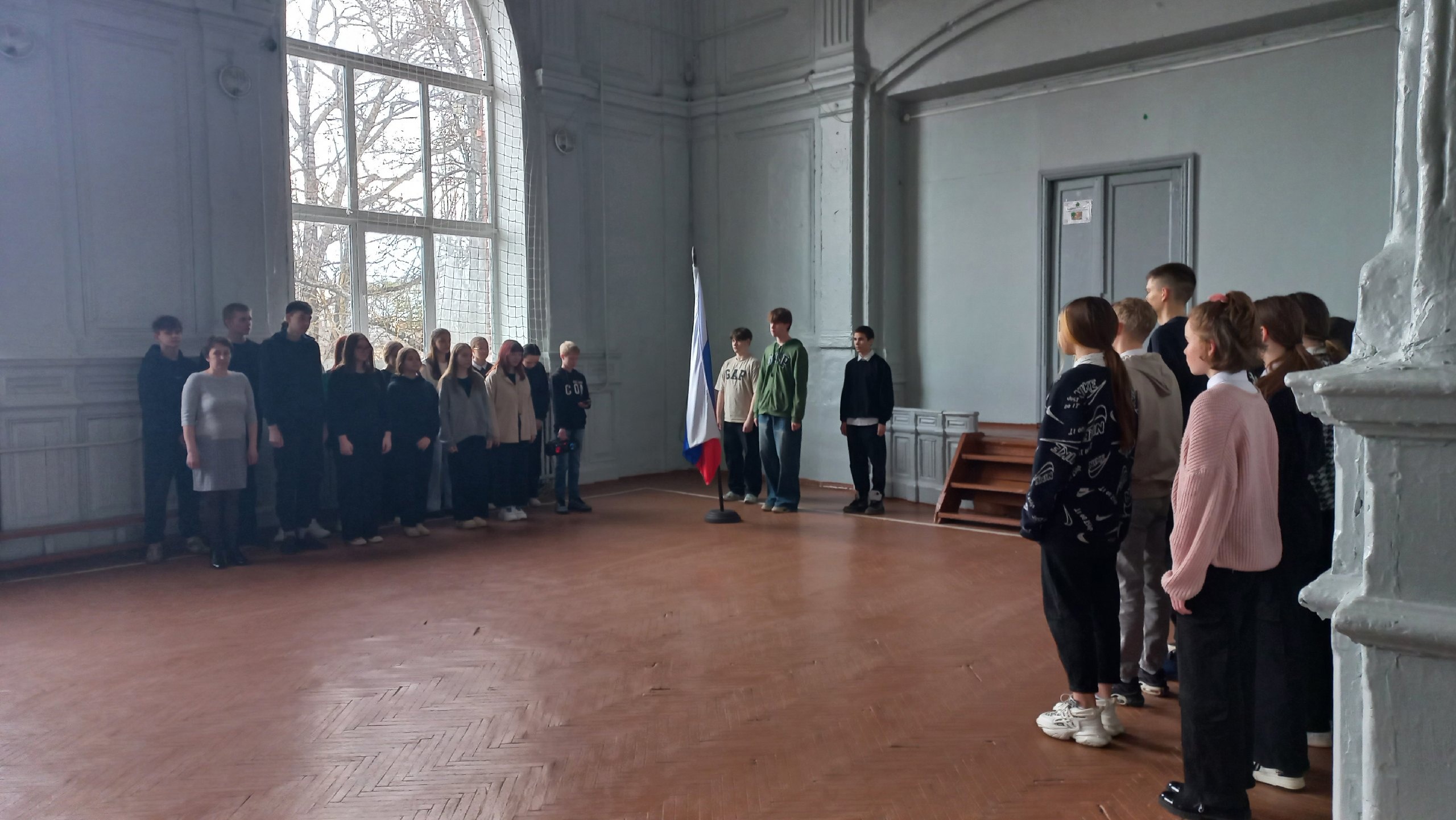 Традиционно новую учебную неделю мы начинаем с выноса флага и исполнения гимна РФ.